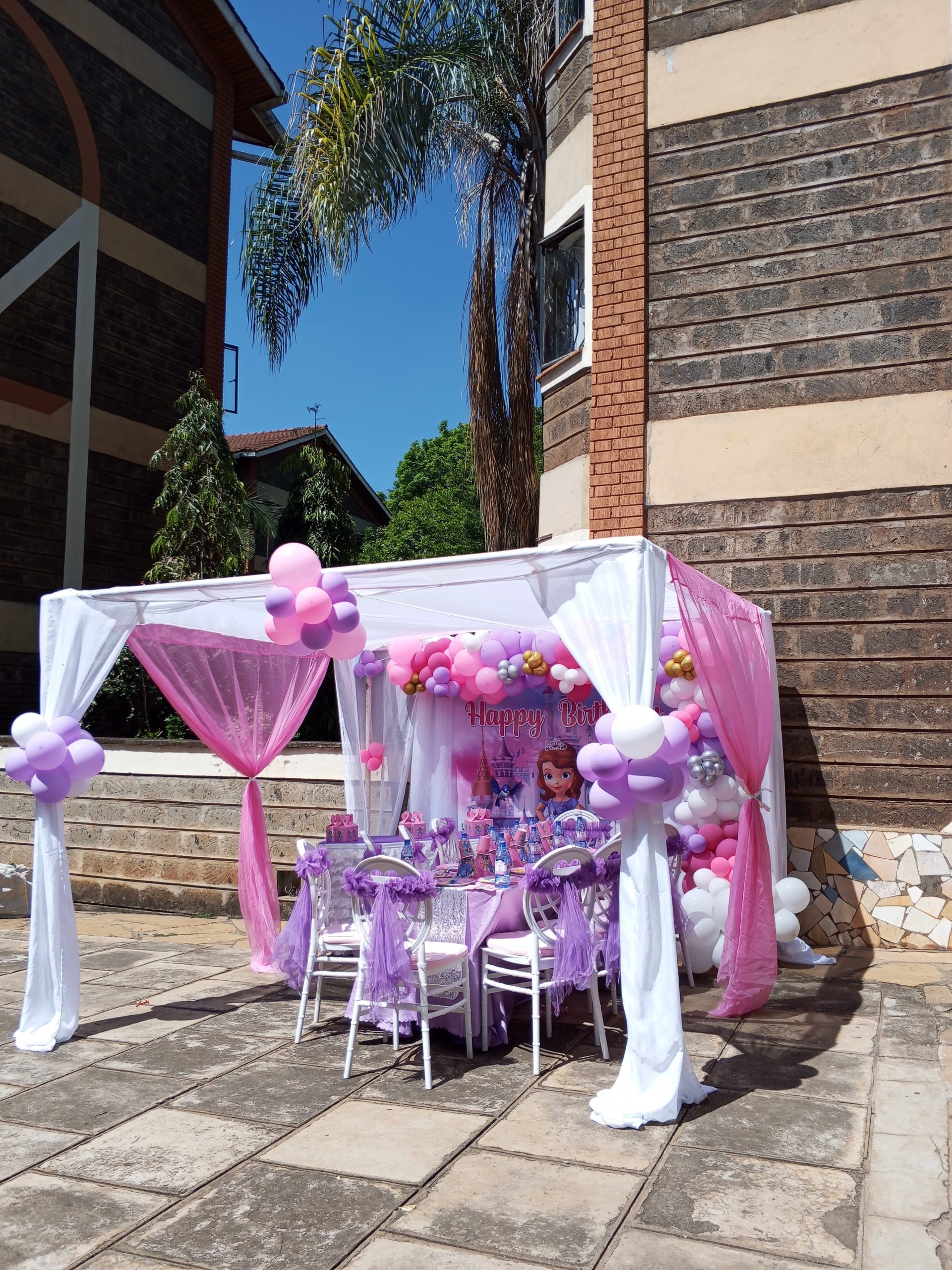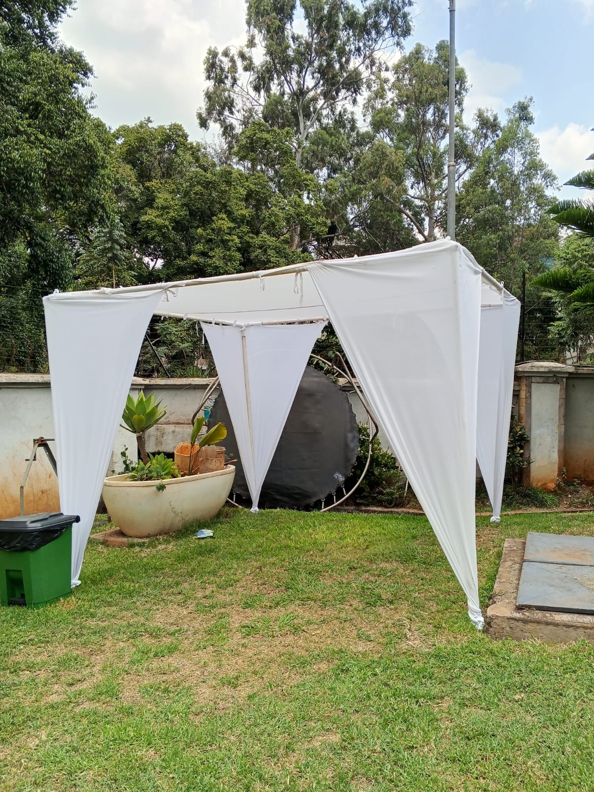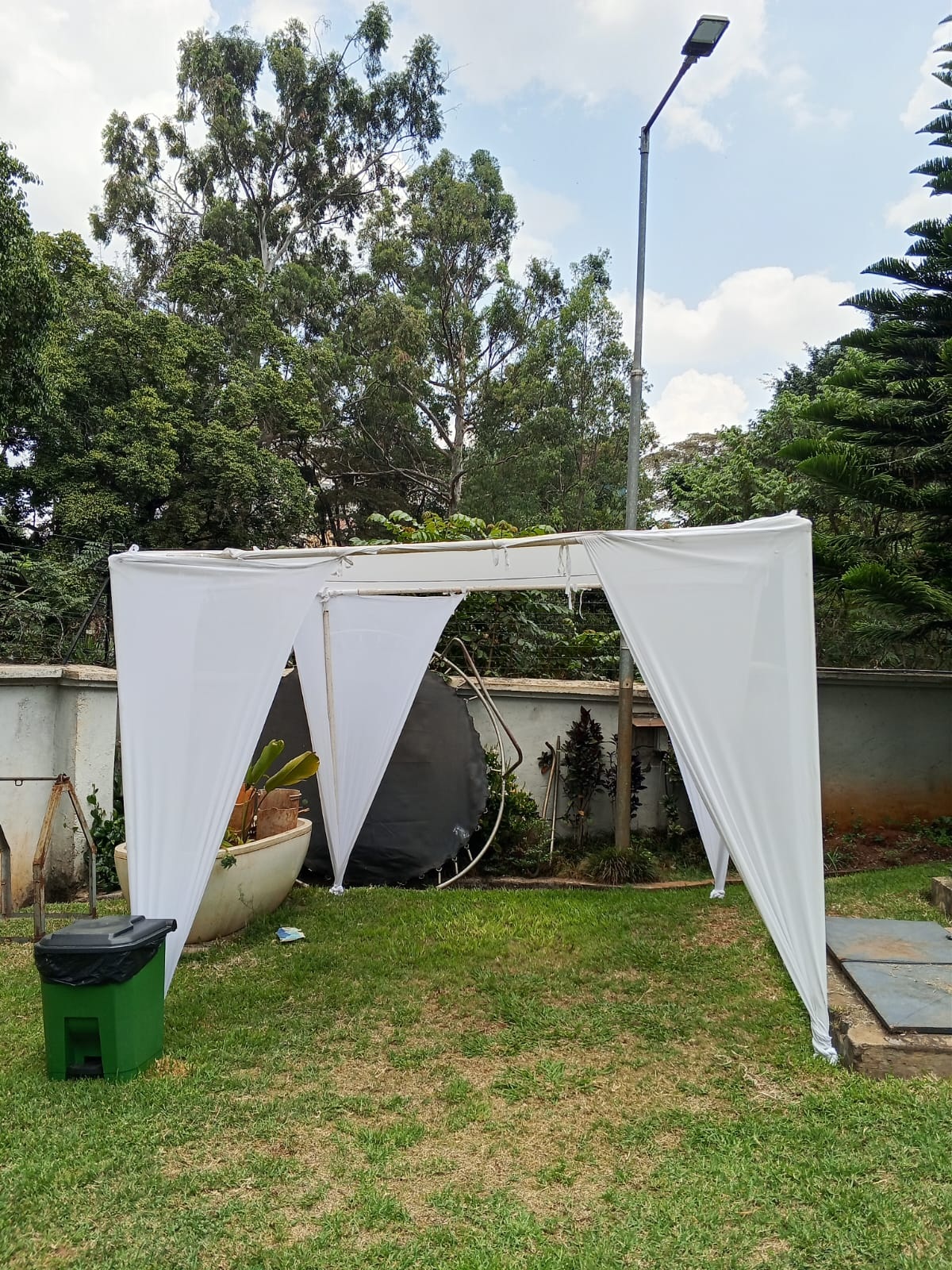 Our 3x3m Canopy Tent is a versatile, quick-deploy option perfect for market stalls, exhibition booths, garden shade, and outdoor dining. The flat-top canopy provides effective sun and rain protection with a clean, modern aesthetic. Seats approximately 20 armless chairs or 1 table with 10 chairs. Easy to set up and available for same-day hire across Nairobi.