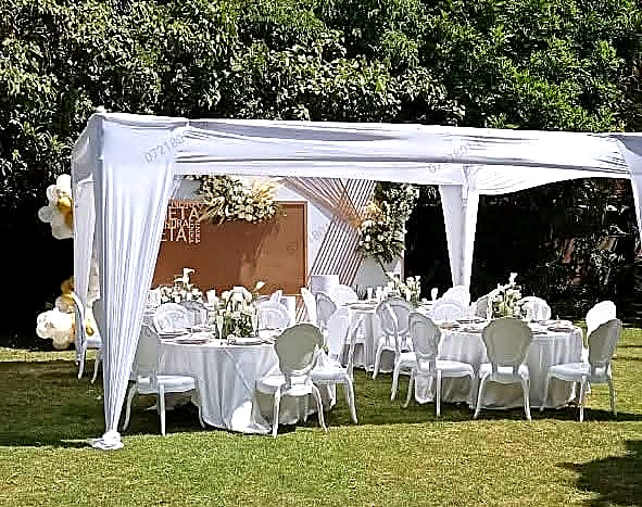 The 6x6m Canopy Tent provides a spacious, modern shelter for up to 50 guests. Its clean lines and flat-top design make it ideal for corporate outdoor events, product launches, and exhibition spaces. Seats 50 armless chairs or 3 tables with 30 chairs. The canopy can be used with or without side walls depending on your preference for airflow versus enclosure.