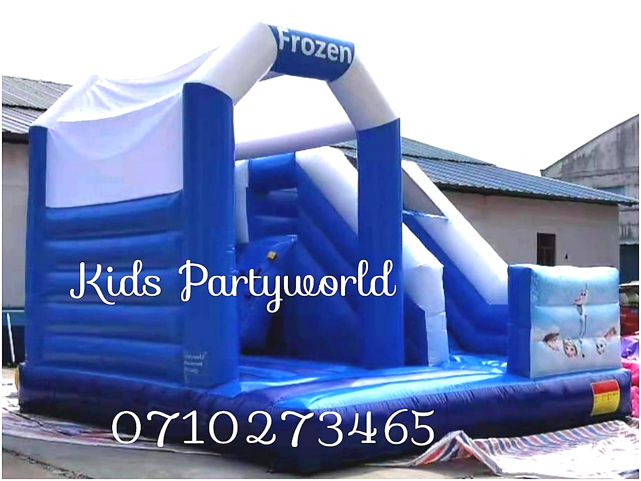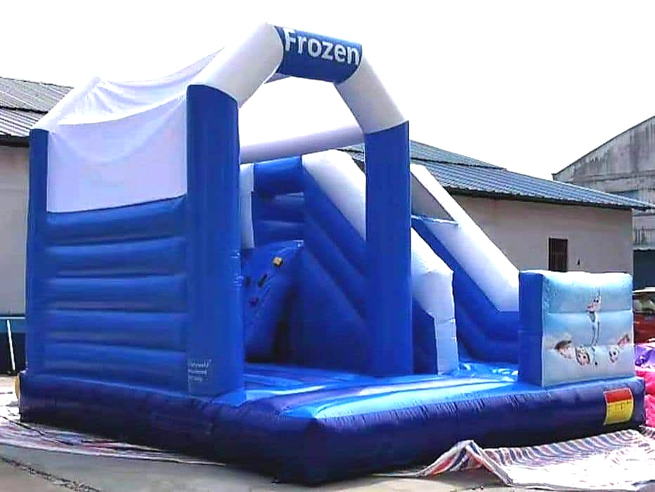 Enter the magical kingdom of Arendelle with our Elsa and Anna Themed Play House! This deluxe combo unit features stunning Frozen graphics with both Elsa and Anna, a spacious bouncy play area, and an exciting dry slide. Larger than the standard Frozen castle at 6m x 6m, this is perfect for bigger birthday parties and events. Child minder included for supervised fun across all Nairobi areas.