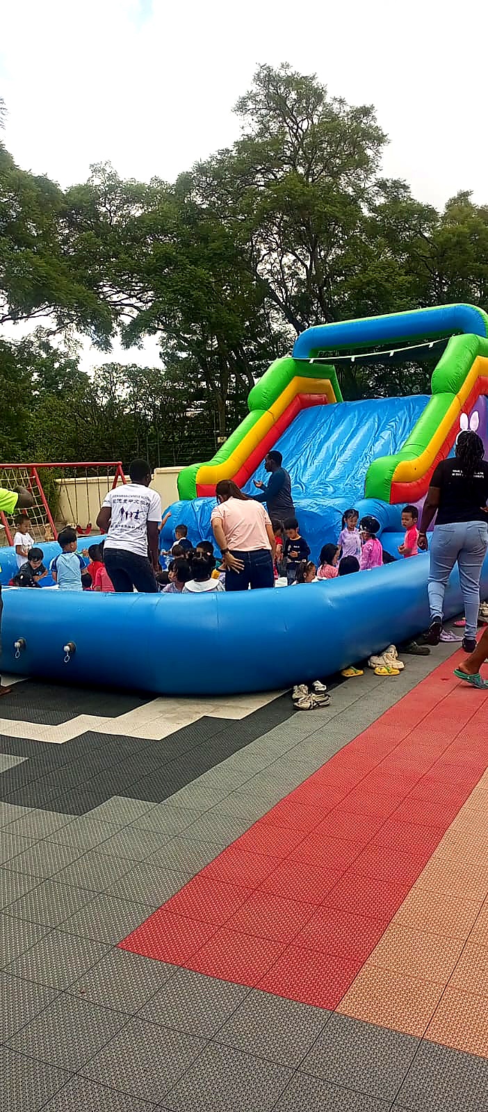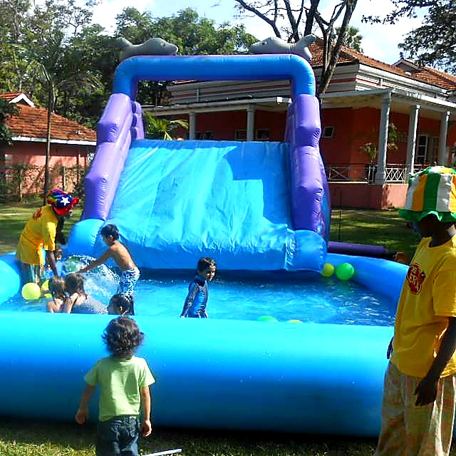 Make the biggest splash in Nairobi with our Gigantic Bouncy Water Slide! This colossal 8m x 13m water inflatable features a huge bouncy play area, a towering water slide, and a massive splash pool. The continuous water flow system keeps the fun going. This is our premium water slide, perfect for large events, school sports days, corporate family days, and milestone birthday celebrations. Requires garden hose connection. Child minder included.