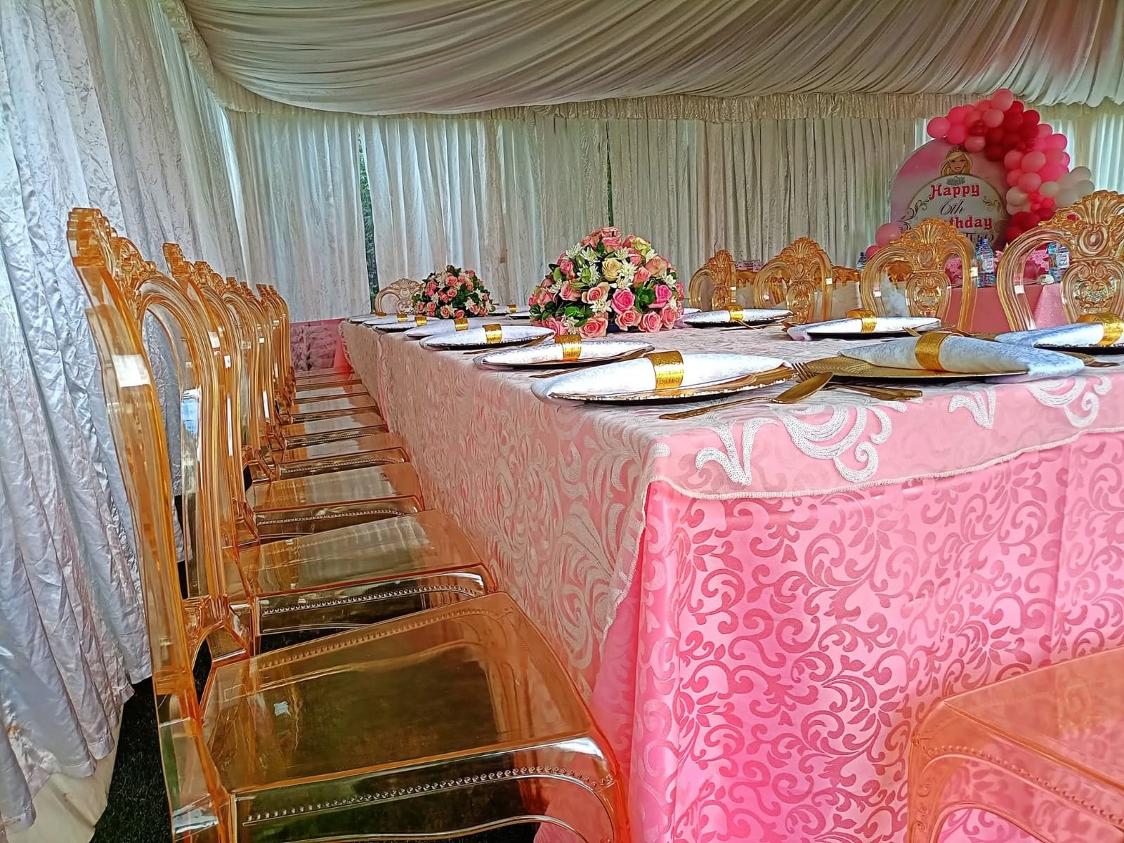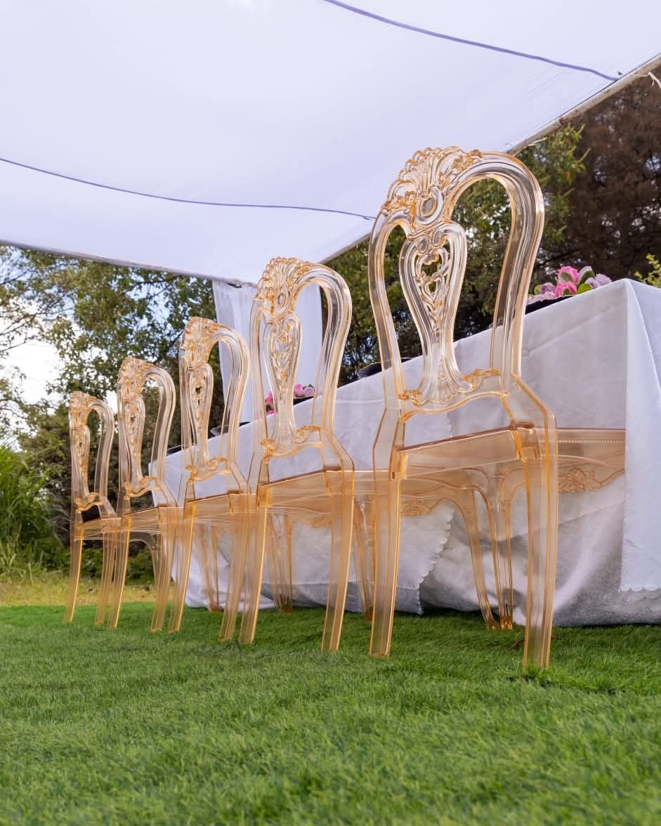 Our Gold Ghost Chairs combine the modern transparency of ghost chair design with luxurious gold-tinted accents. These stunning chairs are a showstopper at glamorous weddings, VIP events and high-end corporate functions. The see-through design creates an airy, sophisticated atmosphere at any Nairobi venue.