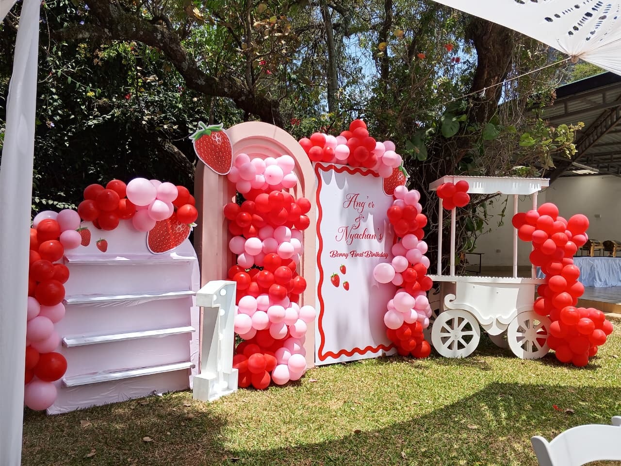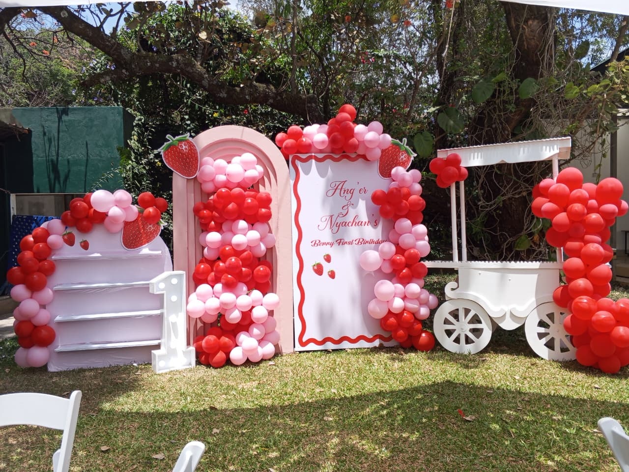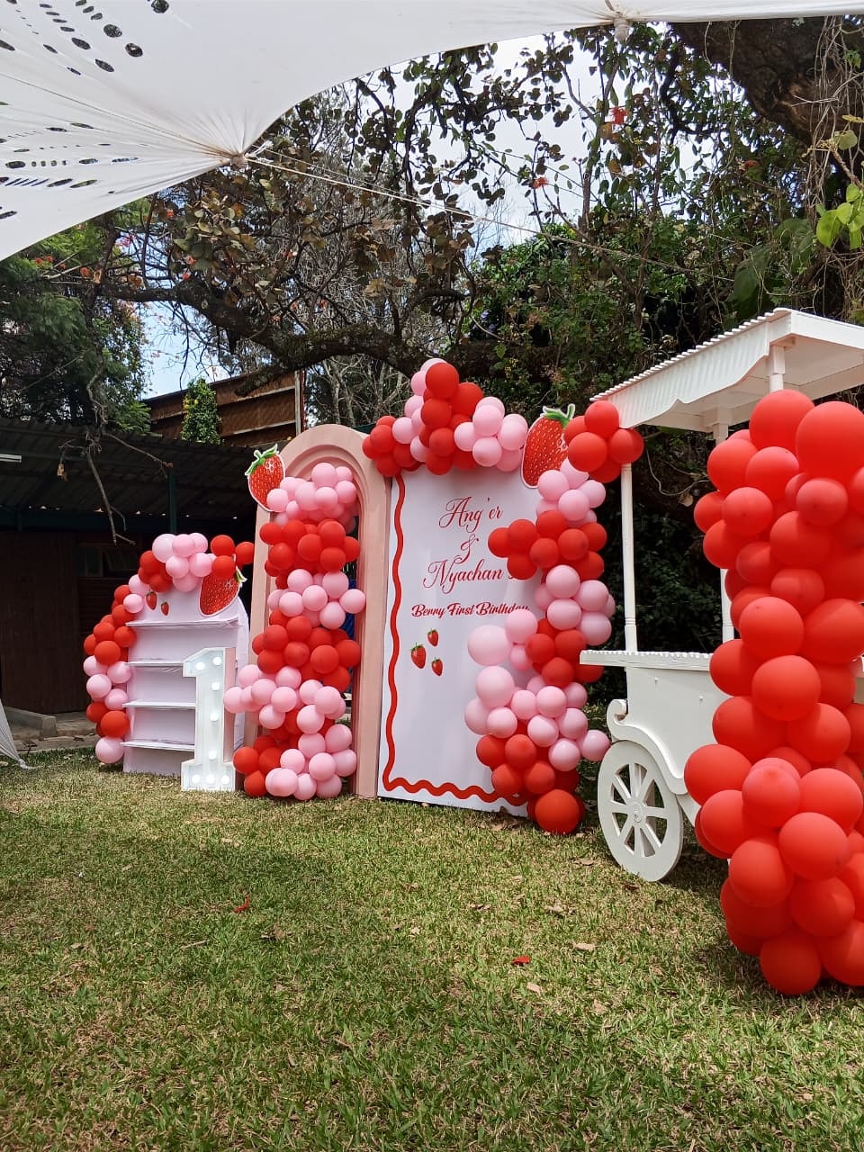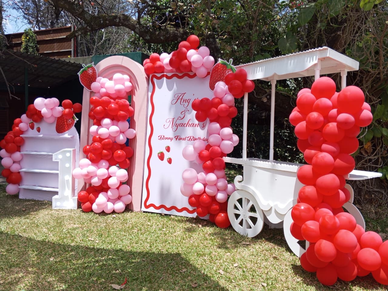 The Grand Double-Door Frame setup is a comprehensive party centrepiece featuring two oversized door-shaped balloon frames, a coordinated gift stand for presents and favours, and a sleek display table. This all-in-one setup creates a cohesive event design that covers your backdrop, gift station, and display needs. The balloon frames are styled with full organic garlands in your chosen palette. Perfect for milestone birthdays, baby showers, and celebrations where you want maximum impact across Nairobi.