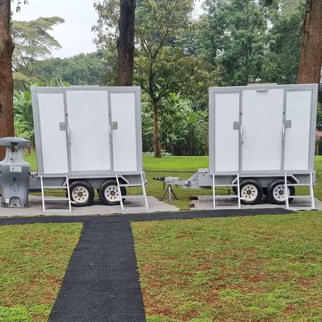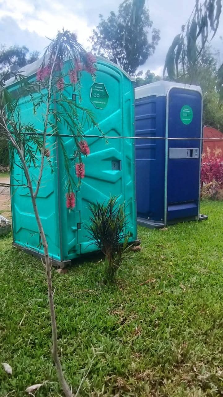 Standard portable toilet ? clean, sanitised and stocked. Ideal for outdoor events, weddings and construction sites.
