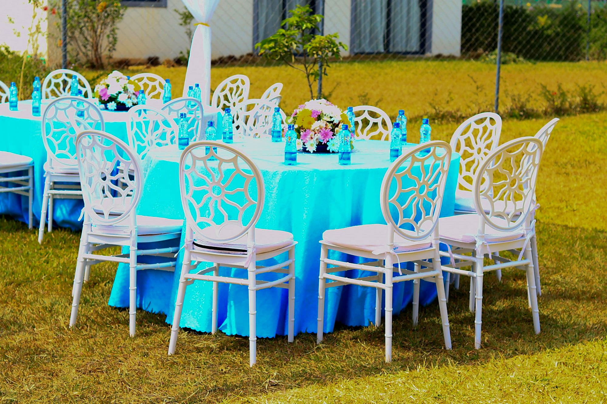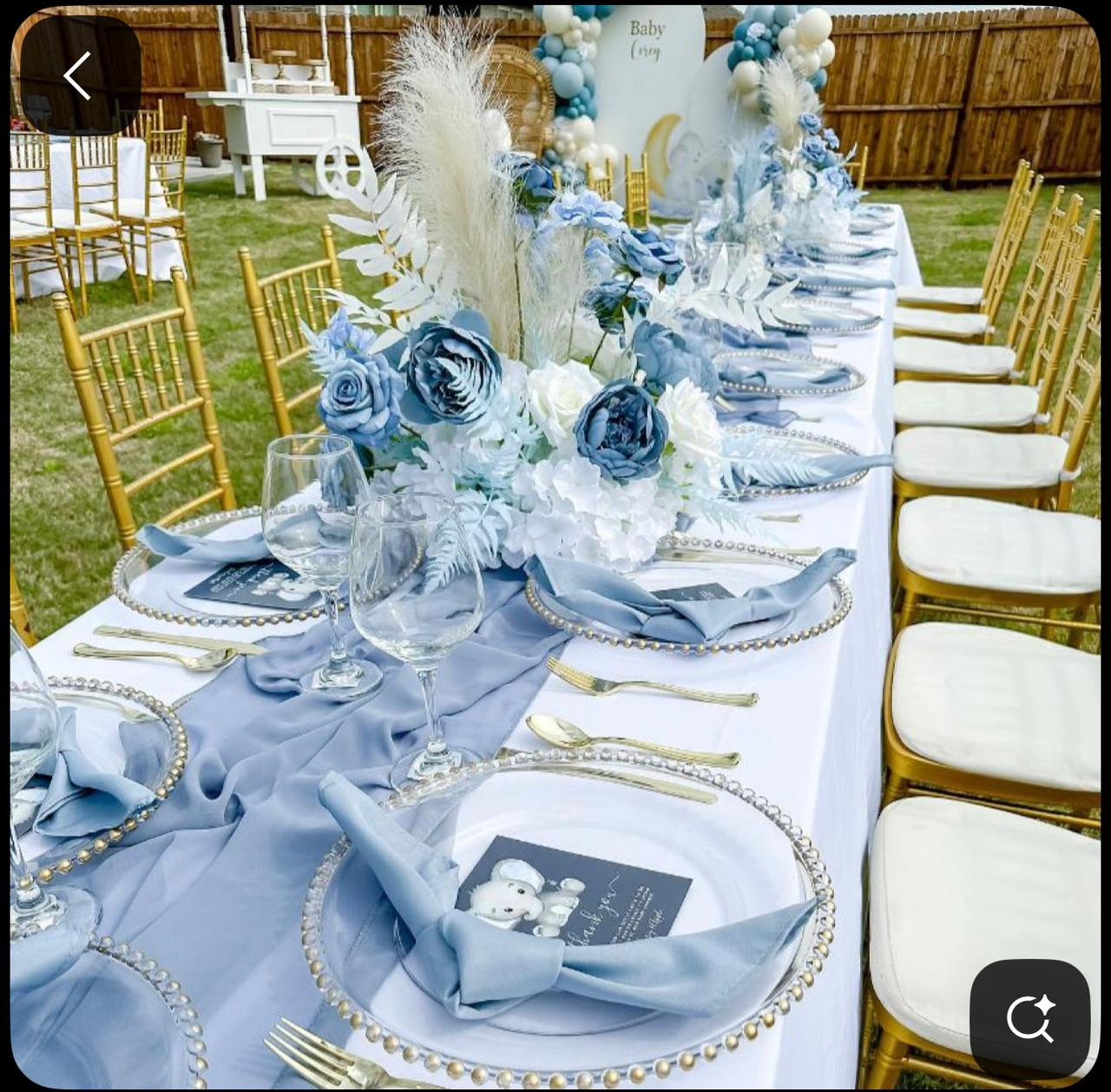 The Essential Celebration for 10 guests is the perfect entry point for an intimate, memorable event. This all-inclusive package features a personalized “Welcome to our Beginning” statement sign on an easel, a beautifully draped high-peak tent to shelter your gathering, 10 elegant Chiavari chairs, and curated place settings with floral centerpieces, charger plates, “Thank You” cards, 3-piece cutlery, and napkins with rings. Every guest receives bespoke branded water bottles, and the event space is completed with a striking Balloon Backdrop, a decorated cake table, and 2 styled food tables. Transport is charged separately.