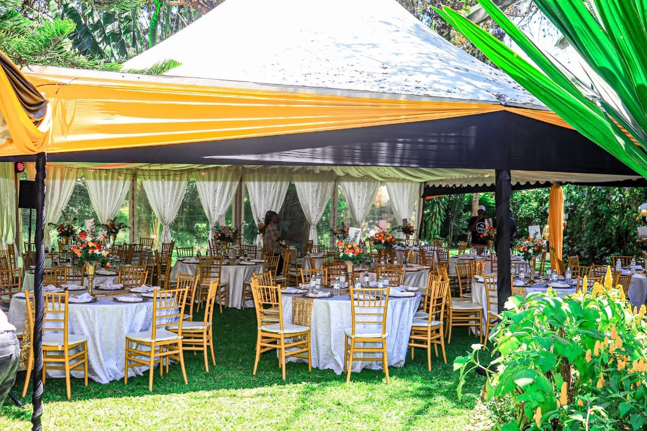 The Essential Celebration for 35 guests comfortably accommodates a larger gathering with all the elegance of our standard package. This package includes a personalized “Welcome to our Beginning” statement sign on an easel, a grand balloon arch at the entrance, a beautifully draped high-peak tent, 35 elegant Chiavari chairs, and 35 curated place settings with floral centerpieces, charger plates, “Thank You” cards, 3-piece cutlery, and napkins with rings. Bespoke branded water bottles are provided for every guest. The event space features a Balloon Backdrop, a decorated cake table, and 2 styled food tables. Transport is charged separately.
