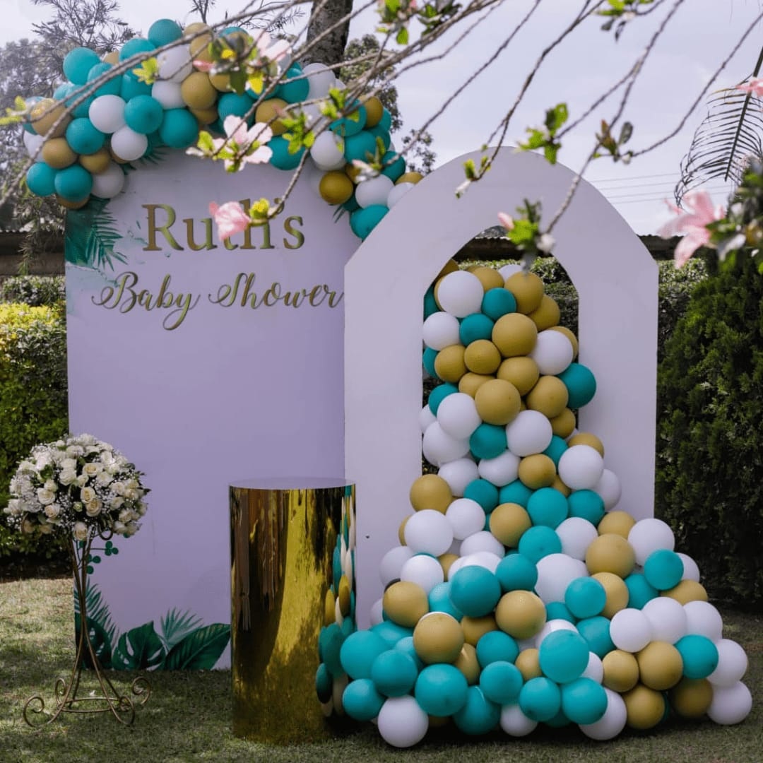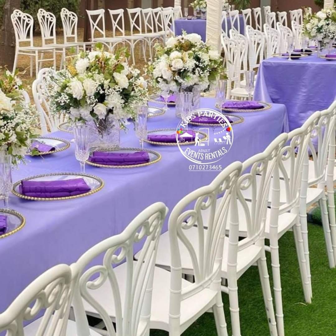 The Essential Celebration for 45 guests offers ample space and style for a larger gathering. This package includes a personalized “Welcome to our Beginning” statement sign on an easel, a grand balloon arch at the entrance, a beautifully draped high-peak tent (or flat roofed canopy), 45 elegant Chiavari chairs, and 45 curated place settings with floral centerpieces, charger plates, “Thank You” cards, 3-piece cutlery, and napkins with rings. Every guest receives bespoke branded water bottles and elegant glass goblets. The event space features a Double Door Backdrop, a decorated cake table, and 2 styled food tables. Transport is charged separately.