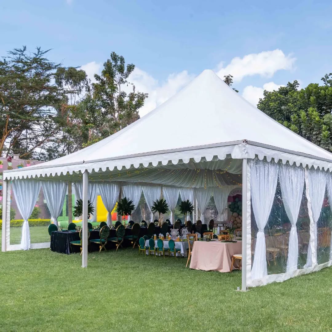 The Flourish 40 creates a truly magnificent atmosphere for 40 guests. This grand package features a personalized Acrylic Welcome Entrance that announces your celebration with unmatched style, an expanded B-Line Luxury Tent System offering 400+ sq. ft. of modern, open-air sophistication, and 40 designer seats of your choice. The table masterpiece includes lush floral runners, gold-rimmed glass charger plates, and heavy-weight premium cutlery sets that radiate luxury. Every guest receives 40 bottles of custom branded water integrated into the table aesthetic and a bespoke welcome card customized with your unique event branding. The showstopper is a sprawling Triple-Door Grand Backdrop with a Neon Sign upgrade, a VIP Front Stage, and a dedicated Cake Pedestal.