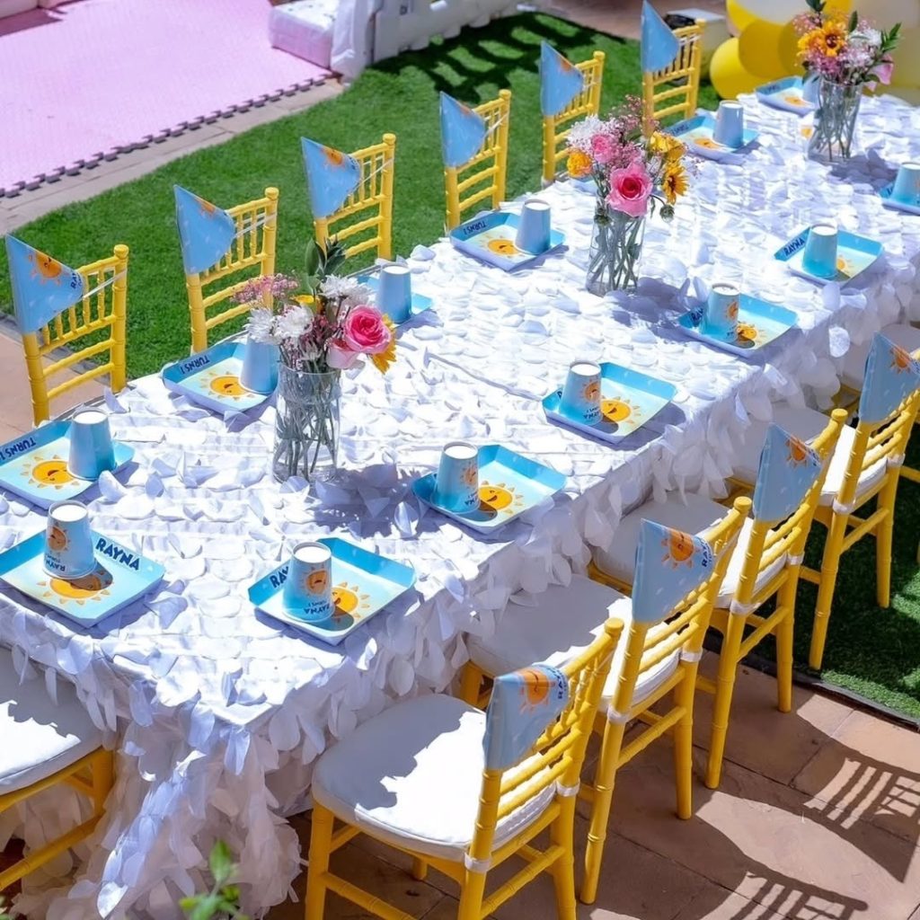 The Little Star Mini transforms any venue into a magical kids’ celebration for 20 guests. This enchanting package features a custom-designed welcome sign on a gold easel to greet your 20 little VIPs, our signature 6m x 6m B-Line luxury tent — a high-peak architectural masterpiece for intimate garden prestige. Choose 20 designer chairs from our elite inventory: Ella Chairs, French Louis, Vogue Chairs, Crystal Clear Ghost, Gold Ghost, or New Edition Chiavari. The table masterpiece includes minimalist fresh floral accents paired with custom themed standee centerpieces. Every child enjoys a complete boutique dining set with personalized disposable paper plates, custom serviettes, premium plastic knives and forks, personalized paper cups, and matching serviette holders. Premium chilled water with custom labels is included for your event. The showstopper double-door shaped backdrop features a VIP front stage and cake display pedestal. Every guest receives a bespoke keepsake gift box with curated treats, bespoke event stationery, and charming party hats.
