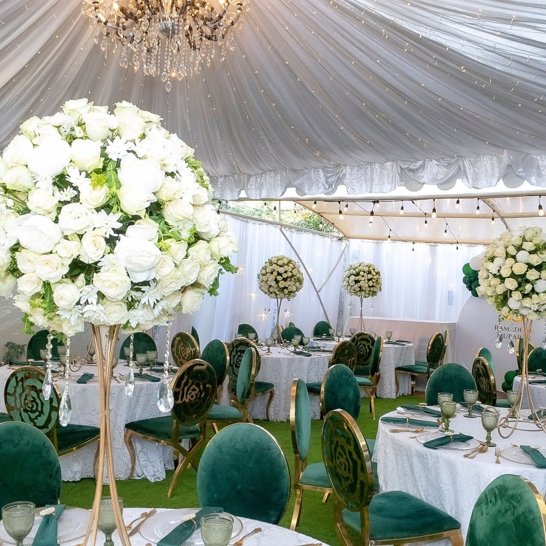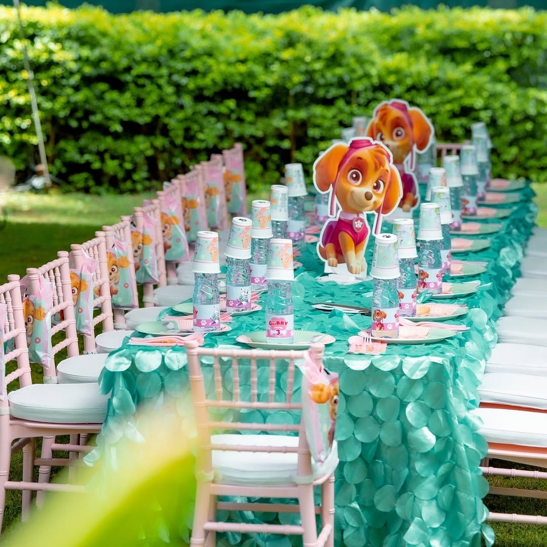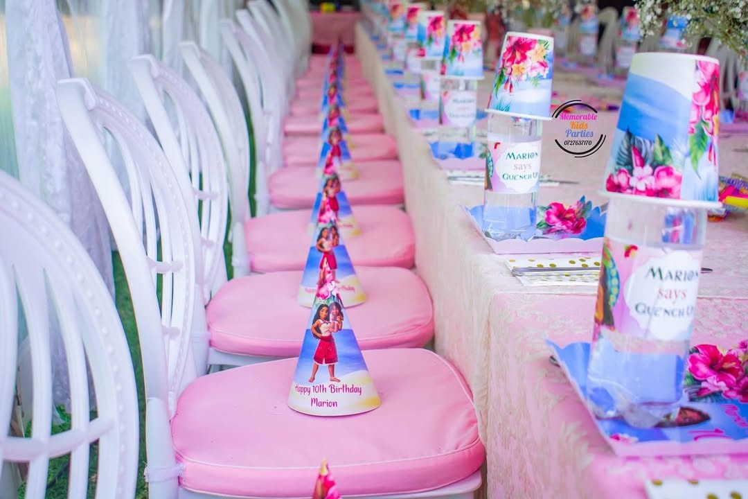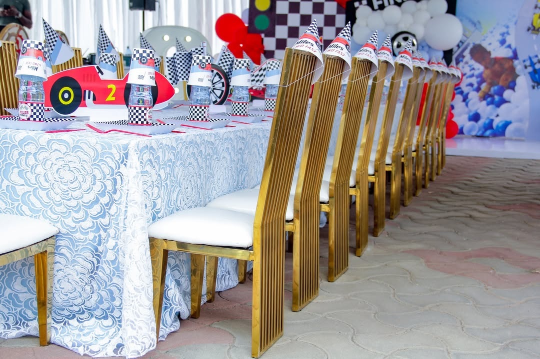 The Platinum Kiddie Soirée delivers grand luxury for 50 young guests. This platinum-tier package includes a double-tiered entrance display with a bespoke sign and floral accents for your 50 VIP kids. Our grand 10m x 10m signature B-Line masterpiece provides 1,000 sq ft of high-peak luxury shelter. Choose 50 designer seats from our elite inventory: Ella, French Louis, Vogue, Crystal Clear Ghost, Gold Ghost, or New Edition Chiavari. The table masterpiece features minimalist fresh floral bowls and custom designer standee centerpieces. Every child enjoys a complete boutique dining set with personalized plates, cups, serviettes, premium cutlery, and serviette holders. Premium chilled water with custom labels is included. The iconic 15ft panoramic triple-door backdrop features a VIP front stage and multi-tier cake display stand. Each guest receives a luxury keepsake gift box with curated treats, bespoke event stationery, and charming party hats.