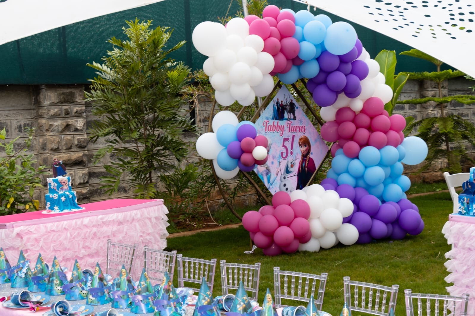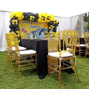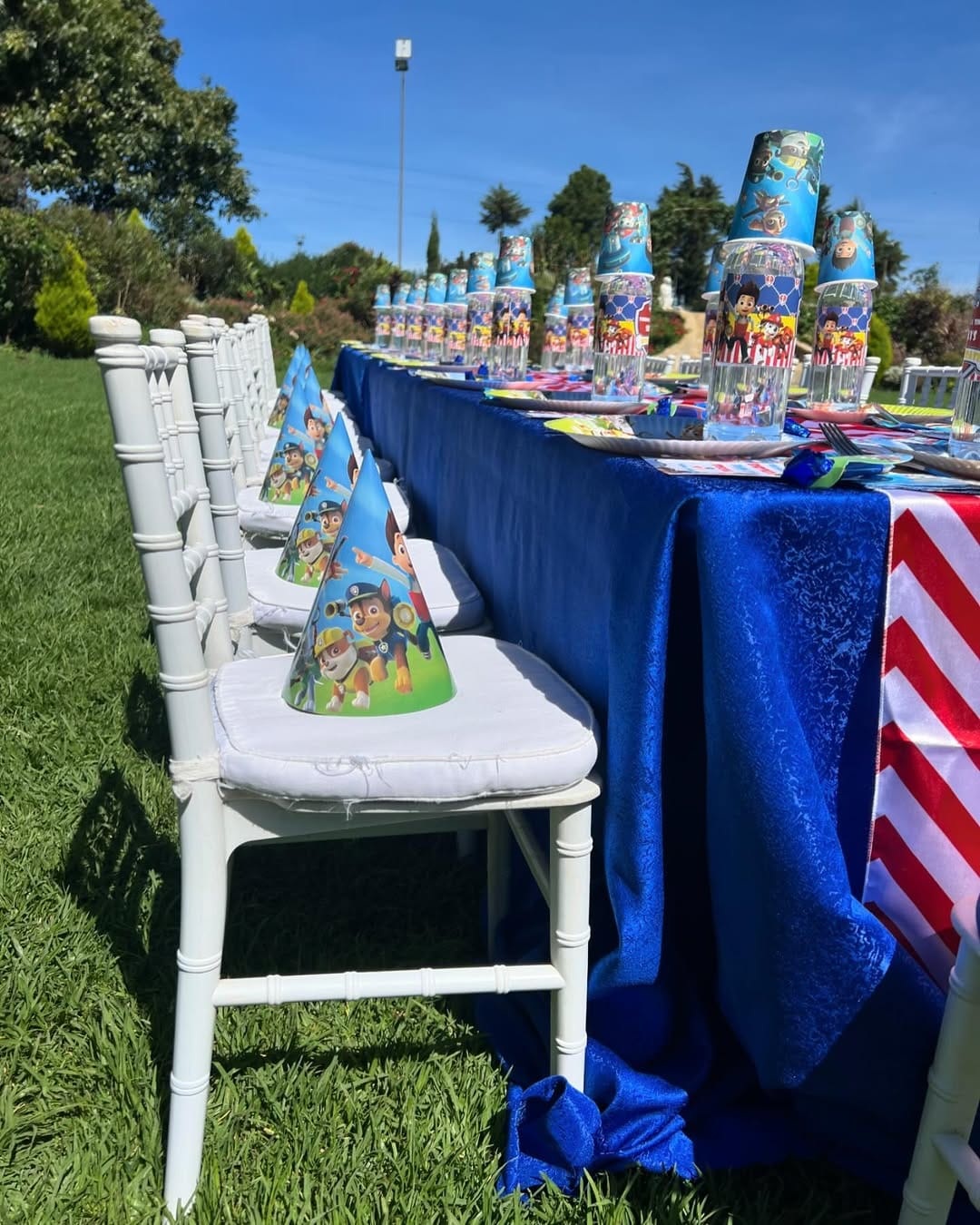The Platinum Squad delivers the dream team of children’s entertainment for 25 little legends. This premium package includes a personalized welcome sign, stylish tent for a cozy shaded party zone, 25 decorated Chiavari chairs and matching tables, a personalized statement backdrop, professional balloon modeling for all 25 kids, themed hats and paper masks, a complete themed dining set, gift boxes pre-filled with delicious candies, BOTH a bouncy castle AND a trampoline for double the thrills, plus the full entertainment package — BOTH a professional clown AND face painting included. No compromises, just pure celebration magic.